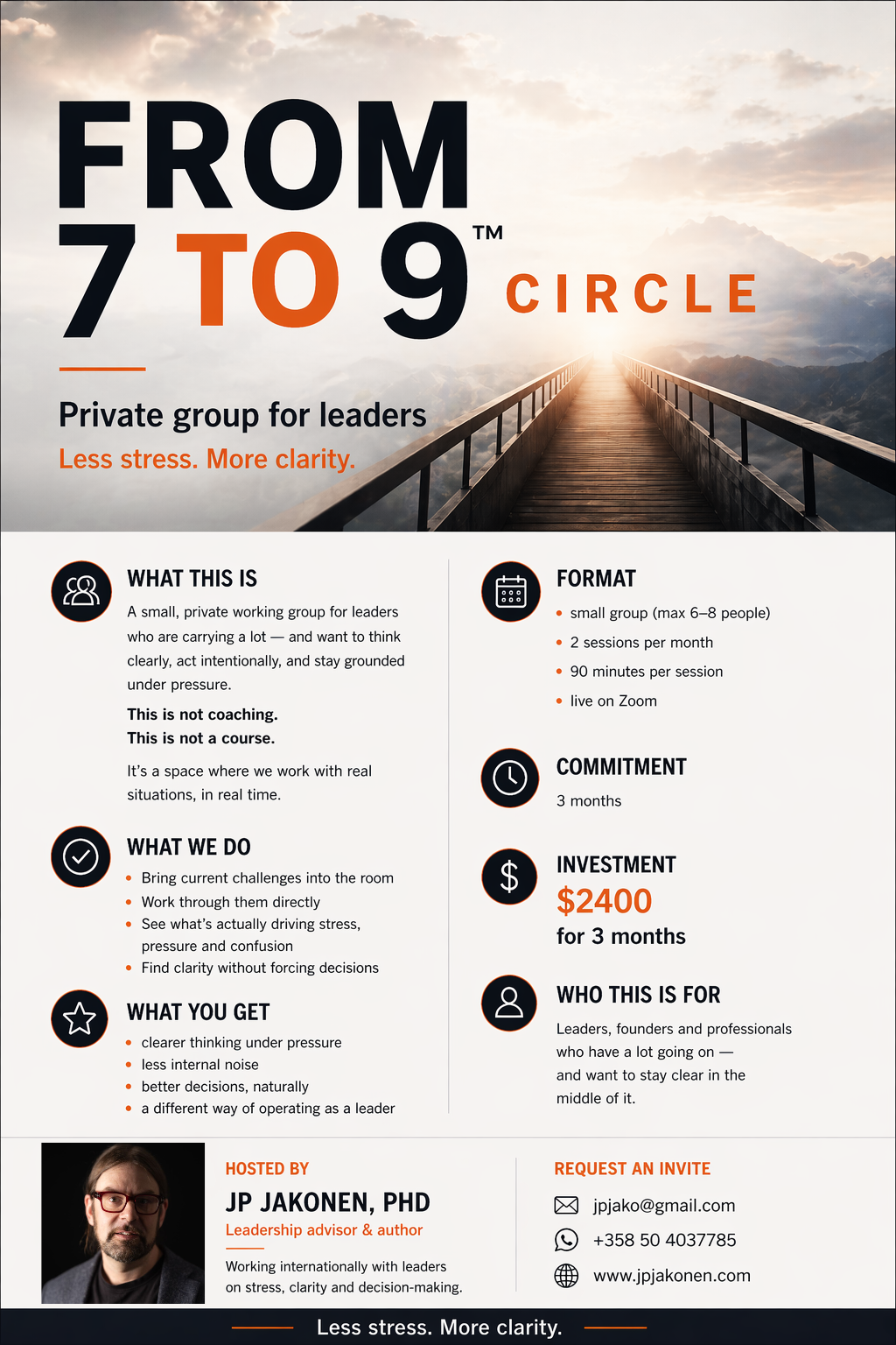 A small, private working circle for leaders who are carrying a lot — and want to think clearly, act intentionally, and stay grounded under pressure.